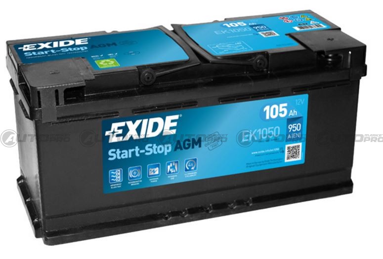 EXIDE START & STOP AGM EK1050 105 AMPERE 950 EN